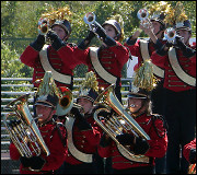 The students represented the community in an outstanding manner. Odessa has never competed in a class with so many large schools and outstanding bands as they did this past Saturday. Before this year Odessa had performed in the finals at Blue Springs on two occasions. The band earned their finals placement by winning the morning division (2A – 4A Schools). Both times Odessa finished 2nd to last in the finals. Over the last few years the Blue Springs Invitational has become one of the finest showcases for the best bands in the Mid-West area. The Odessa band is very proud of their accomplishments due to the fantastic list of bands that were represented at the Blue Springs Invitational. The Band of Distinction decides its success based on their own performance, and not how they compare to someone else. The Band’s success does not always translate into trophies, but into feelings and memories that last a lifetime. The fact that Odessa High School can compete with schools of more than double their school size is a testament to the hard work, talent and commitment of 120 remarkable students. These are 120 students that any teacher would be proud to work with. The band would like to apologize for not performing their show at the football game Friday night. Due to the homecoming coronation and the set-up and tear down time the band couldn’t perform their show without penalizing the football team. The support of the crowd was amazing. It is the enthusiasm of the crowd that helps pull out the best performances from the students each half-time. You can see the band perform this weekend at the Judges Association of Mid-America (JAMA) Regional Band Championship. The band will perform at 2:30. Please visit www.odessabands.com for up to the date information, pictures and video of the Band of Distinction. |